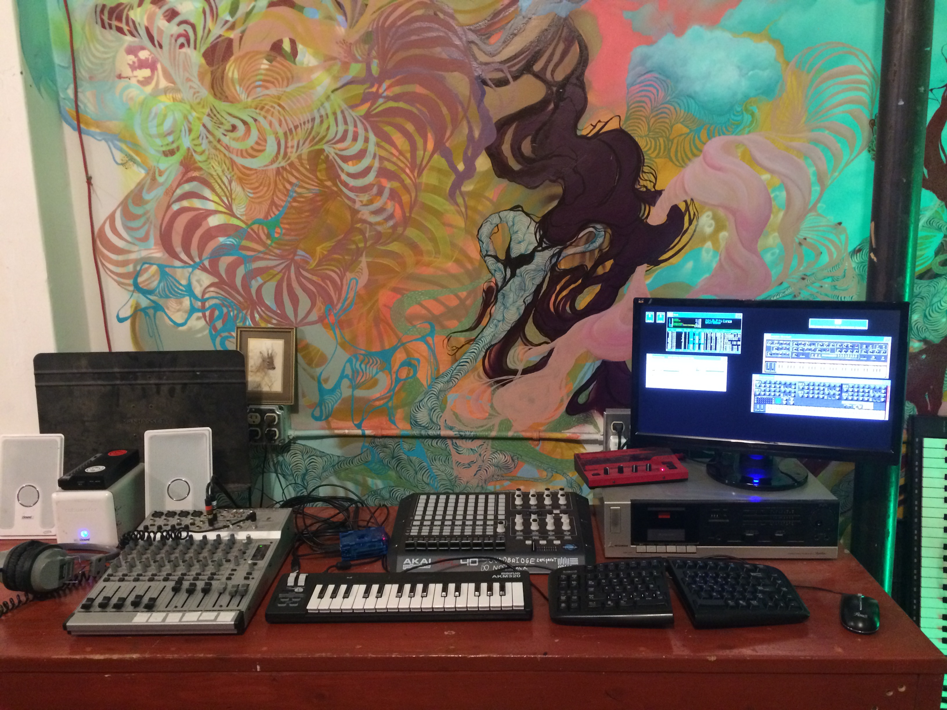 The computer music workstation along the southwest wall.