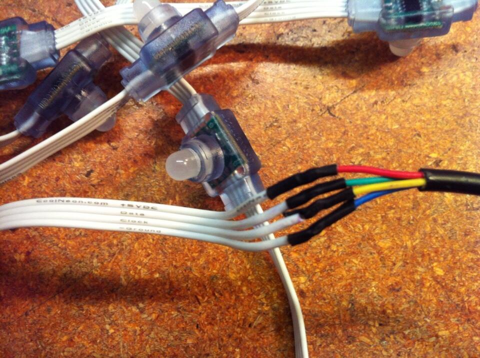 Wiring of Cool Neon connectors {red:5v,green:data,yellow:clock,blue:ground}