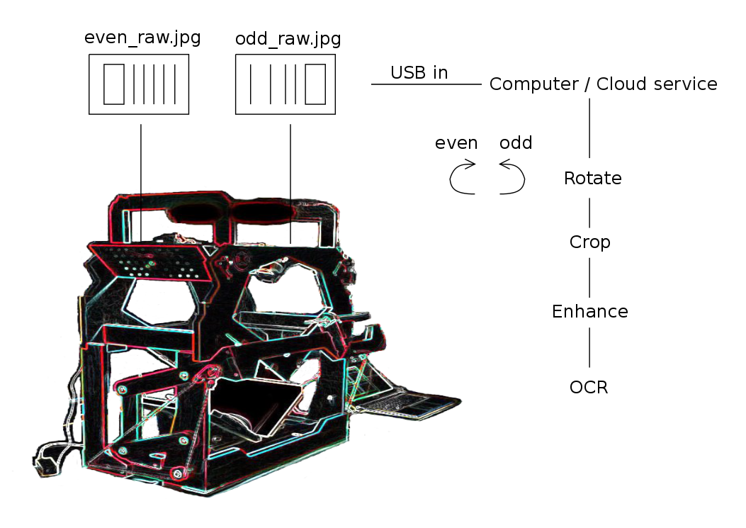 | current | 22:54, 14 May 2015 | 1,053 × 745 (380 KB) | Andrewdefries (talk | contribs) | Schematic briefly demonstrating the digital workflow for even and odd pages. |
